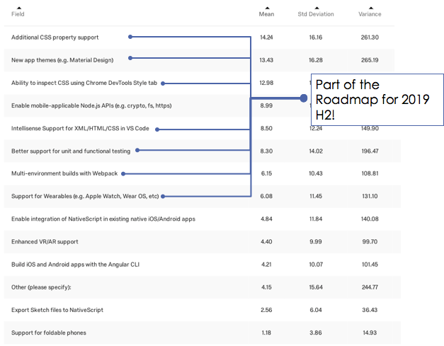 box-shadow support, media queries, and so on. We will evaluate switching to alternative CSS parser, which potentially would improve the performance and provide more CSS features like CSS variables.On the other hand, we will probably put features that show limited interest on the Backlog for now, like Foldable Phones support, Angular CLI integration and Integration in NativeScript in existing native iOS/Android apps.