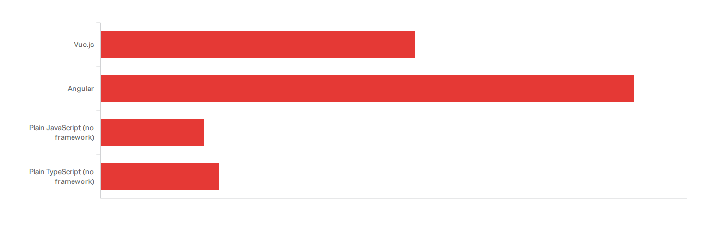 Vue.js usage is continuing to grow (almost 1/3 of the users), while the Angular user base is steadily our biggest group of users (1/2 from the whole).