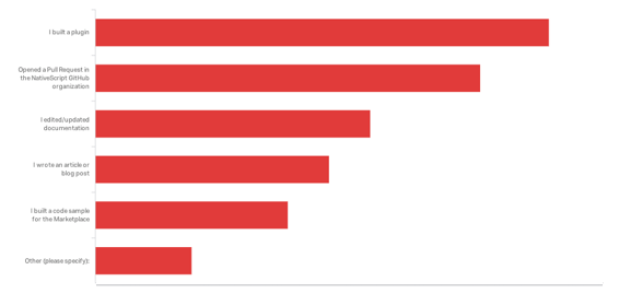 Although most people find about the framework through quality content - this is only the #4 way people try to contribute to the framework. #1 is building a plugin, which is a great trend and we would like to see it growing further. But, think about this - if you built a plugin, you probably have a great story for a blog post. Probably, your plugin is filling in for a missing integration, exposing a native capability in a cross platform API, or wraps some kind of self-sufficient functionality - all of these would be very valuable story to write about. If you need a tribute - be sure to get in touch with our team. We are always happy to have guest bloggers on www.nativescript.org.